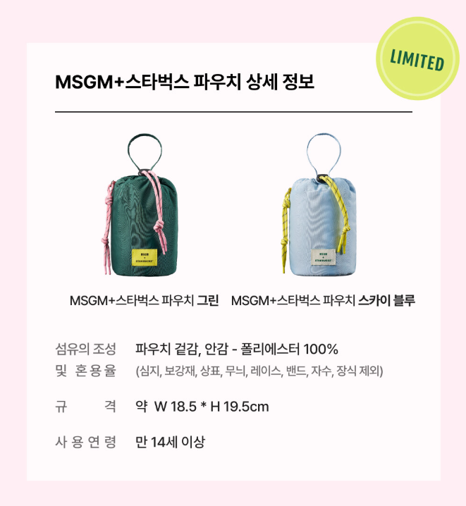 - MSGM+스타벅스 파우치 (그린 / 스카이 블루)