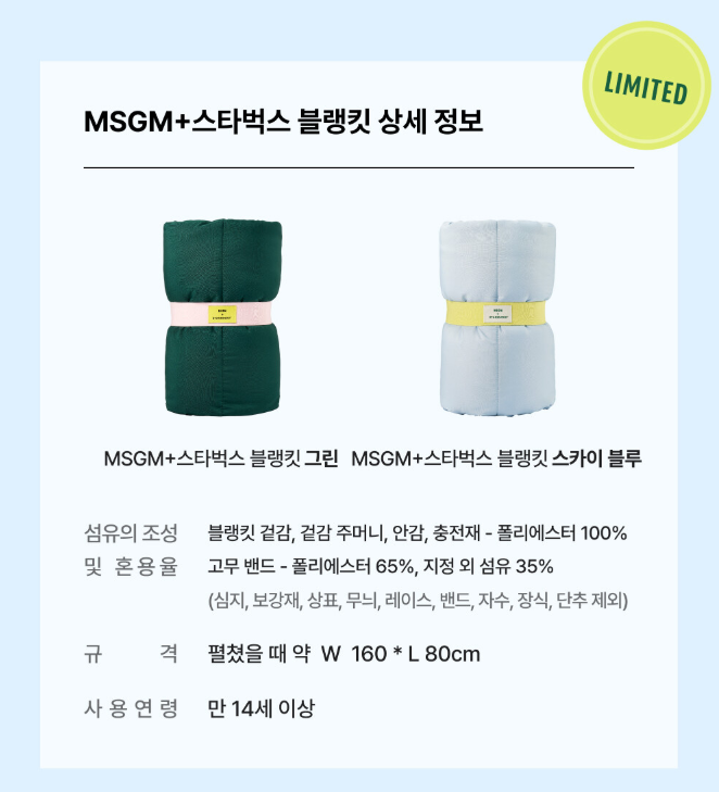 - MSGM+스타벅스 블랭킷 (그린 / 스카이 블루)
