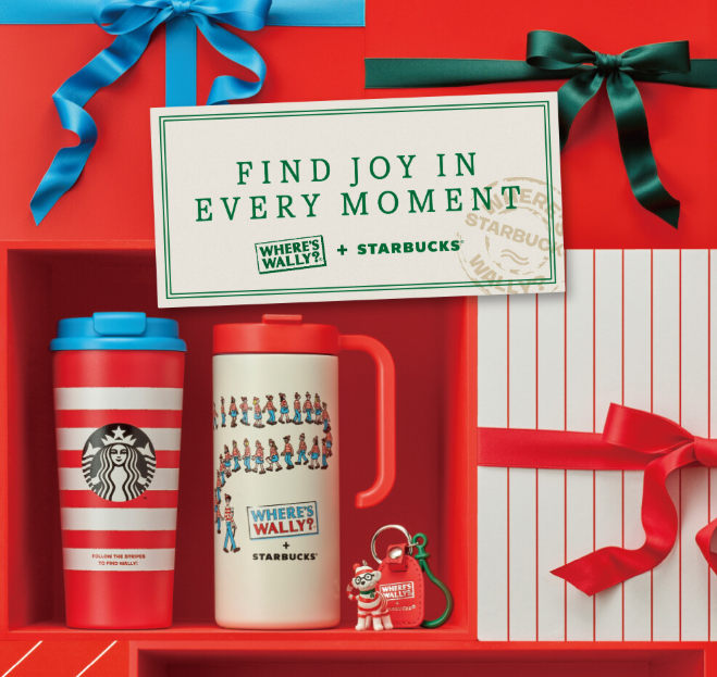 - 체리 드리즐과 블루 바닐라 푸딩으로 ‘월리’의 빨간 줄무늬 티셔츠와 청바지를 형상화한 시그니처 음료.
