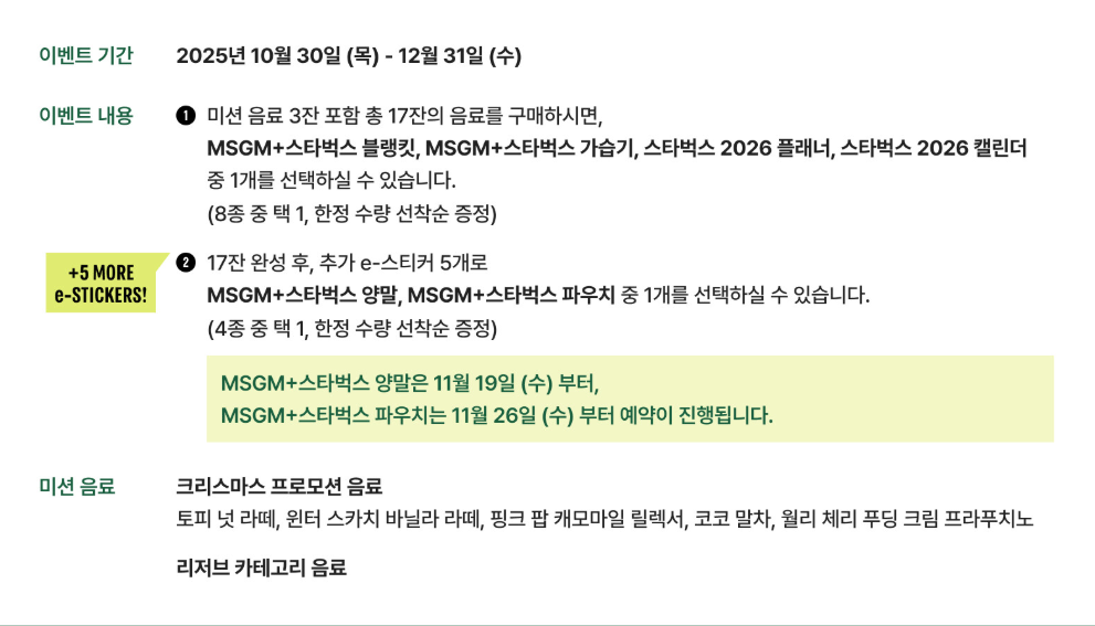 올해 스타벅스 2025 겨울 e-프리퀀시는