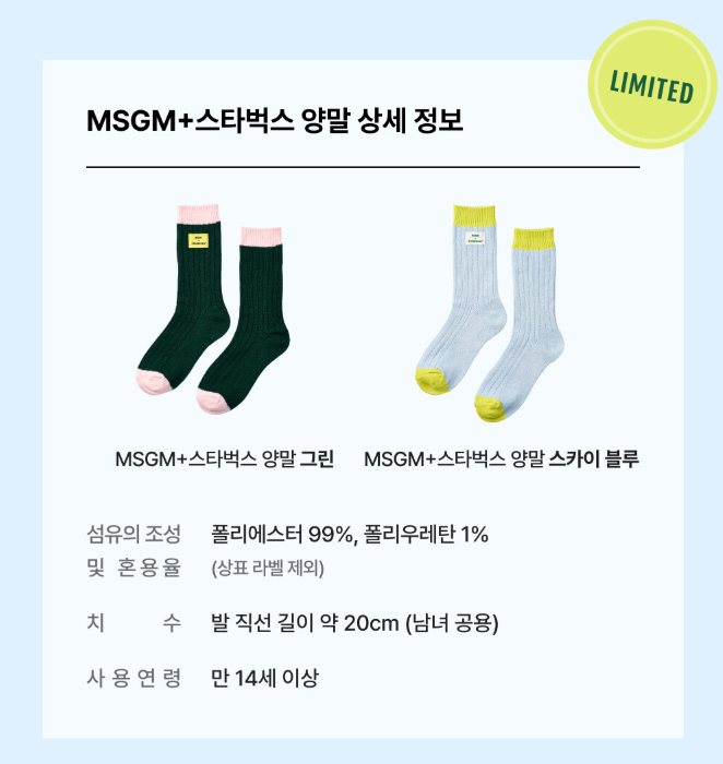 - MSGM+스타벅스 양말 (그린 / 스카이 블루)